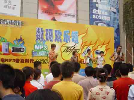 今天上午,在太平洋大廈門(mén)前北京商科公司正在舉行題為“數(shù)碼歡樂(lè)頌”的大型路演。