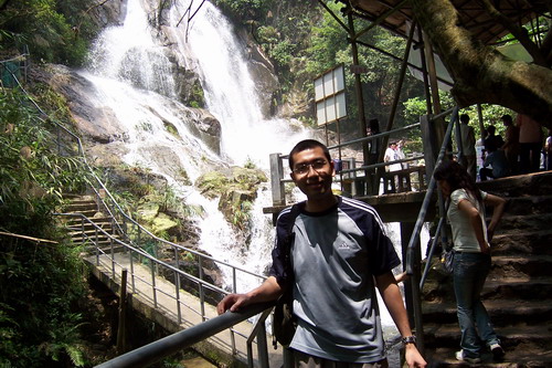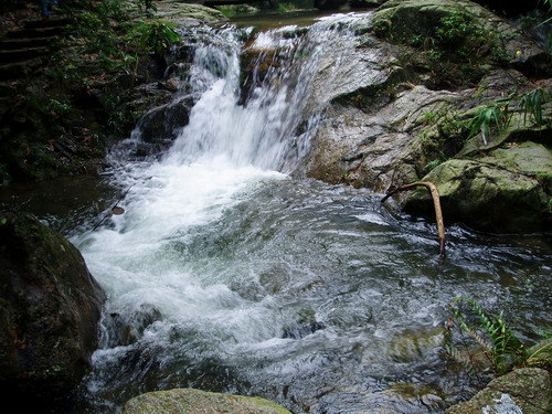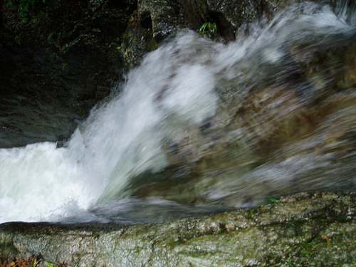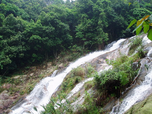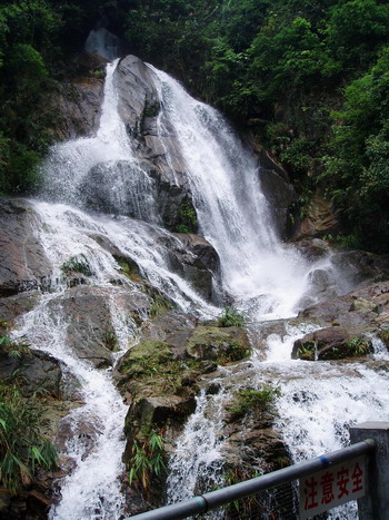 天后瀑,落差 80 多米,溪流飛湍而下,穿過元陰?kù)F,蔚為壯觀