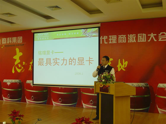 銘瑄產(chǎn)品經(jīng)理趙經(jīng)理進(jìn)行《銘瑄---最具實(shí)力的顯卡》的詳細(xì)介紹,從銘瑄顯卡研發(fā)、銷(xiāo)售到廣告投放。說(shuō)明銘瑄如何是最具實(shí)力的顯卡,現(xiàn)場(chǎng)掌聲不斷。
