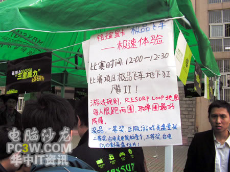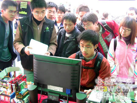 第一個進(jìn)行SLI平臺體驗的竟然是一位MM,果然是巾幗不讓須眉啊。看她熟練的玩著極品飛車地下狂飆2,小編也不由感慨,這里不愧是華中地區(qū)最好的理工科學(xué)府啊,果真的臥虎藏龍。