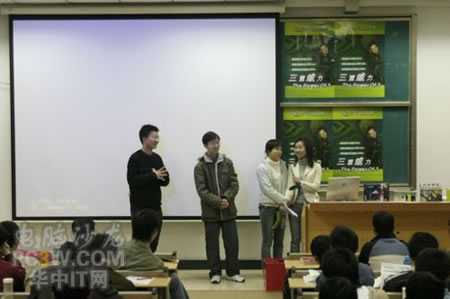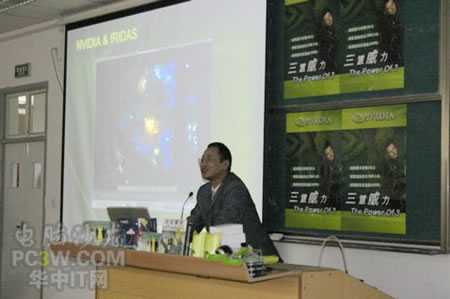 講座首先由商科集團武漢分公司天行電腦的唐平安先生發(fā)言,他首先詳細(xì)的向大家解釋了銘瑄NVIDIA“三重威力”的定義。并就“三重威力”的具體內(nèi)容SM3.0、HDR以及SLI逐一做了詳細(xì)的說明,并分析了未來顯卡的發(fā)展趨勢。他生動詳細(xì)的演講讓在場的同學(xué)們聽得聚精會神,對其產(chǎn)品有著濃厚的興趣。