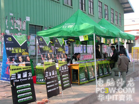 校園行也力圖讓廣大學生真實的體驗來自NVIDIA的強大新技術所帶來的震撼效果,特別是SM3.0、HDR以及SLI這三大顯示技術。產品展臺上擺滿了各款銘瑄支持這“三重威力”的顯卡產品。從入門級的6200TC直到最近被各大IT媒體所熱炒的6800GS,展示產品可以說是琳瑯滿目。