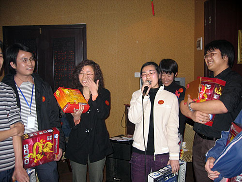 整個大會分為三個部分,第一樂章:2006年優秀員工表彰大會;第二樂章:迎春晚會;第三樂章:神秘大抽獎。