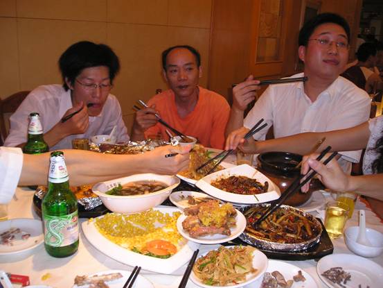 不能光顧著吃菜呀,菜可是用來下酒的,來!白酒滿上!先干為敬啊!