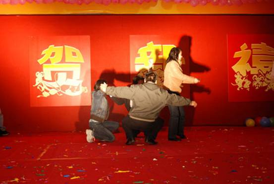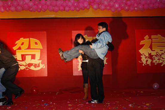 拋開了一切負(fù)擔(dān)和辛勞,在同事們的歡呼聲中,商科迎春晚會(huì)正式開始了。