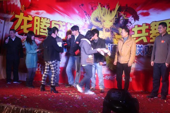孫總為大家抽取現(xiàn)金大獎,興奮的同事們狂奔上舞臺