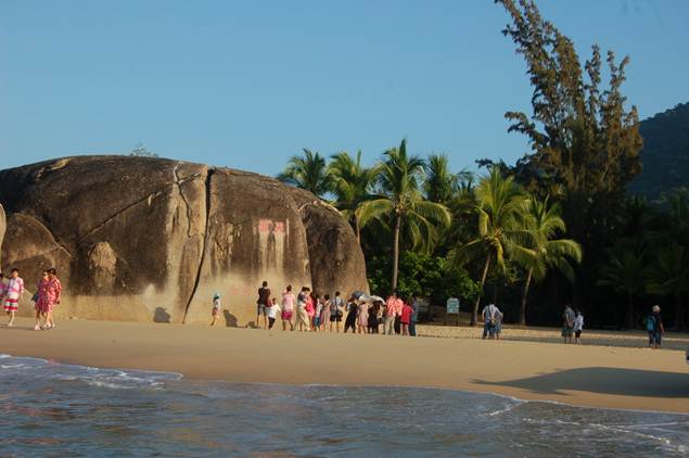 離別分界洲,午后參觀完蝴蝶館,隨后就來(lái)到了亞龍灣;迎面第一眼就看到了圖騰廣場(chǎng),參觀了設(shè)在亞龍灣中心廣場(chǎng)底部的貝殼館,離開(kāi)五彩繽紛的貝殼館區(qū),醒目的“天下第一灣”就映入眼前;一個(gè)半月形海灣,沙灘平緩,沙質(zhì)潔白細(xì)軟,灣內(nèi)波平浪靜,綠山環(huán)抱著清澈的海水,我們迫不及待地投身大海,與三亞來(lái)了一次最親密的接觸;海邊嬉戲,陽(yáng)光。沙灘。大海。放松身心。放縱內(nèi)心的慵懶,回歸到原位。。。