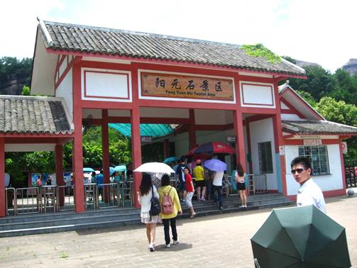 經(jīng)過三個半小時的車程,中午時分,終于來到了丹霞山景區(qū)。下車的時候,雨霽天晴,飽餐一頓后,迫不及待的,涂防曬霜,噴蚊怕水,撐太陽傘、穿防曬衣、帶帽子、太陽眼鏡,防曬防暑的裝備一應(yīng)俱全,在大家整裝后,我們開始朝著第一個目的地——元陽石風景區(qū)出發(fā)!