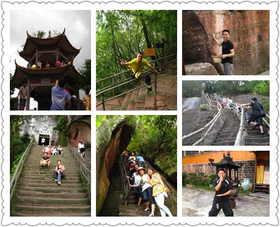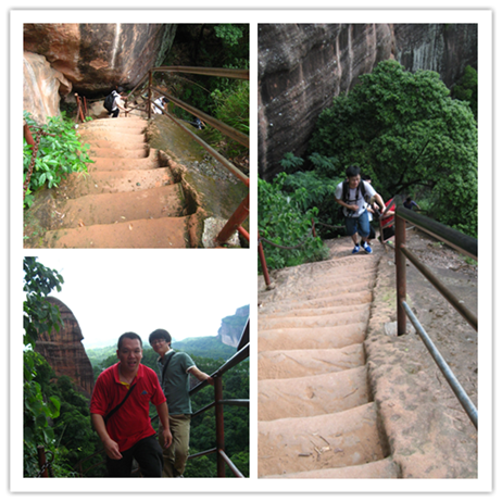 因天氣太熱,有些同事便在這里止步了,但還有不少的同事,繼續(xù)前進,目標細美寨。丹霞的山,都不是很高,但以為很容易爬,就大錯特錯了,一段快90度的山路嚇怕了不少女同事,看來丹霞山還真不容易爬啊。