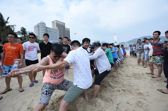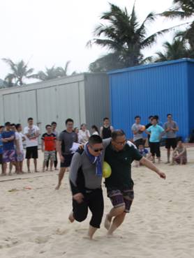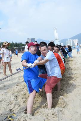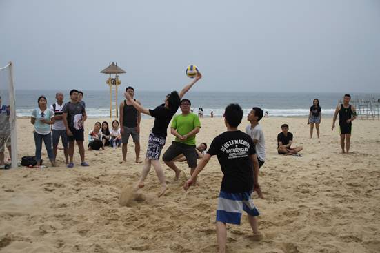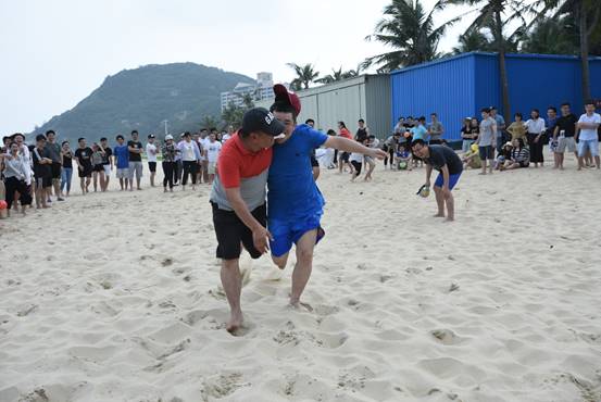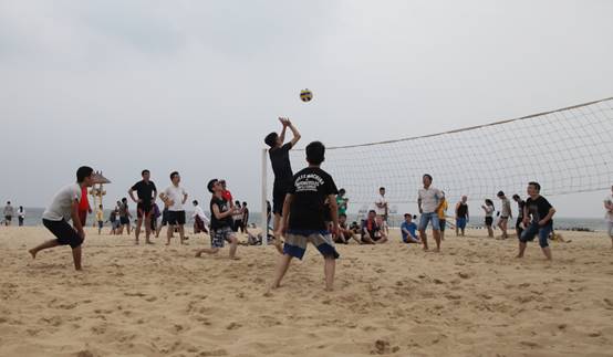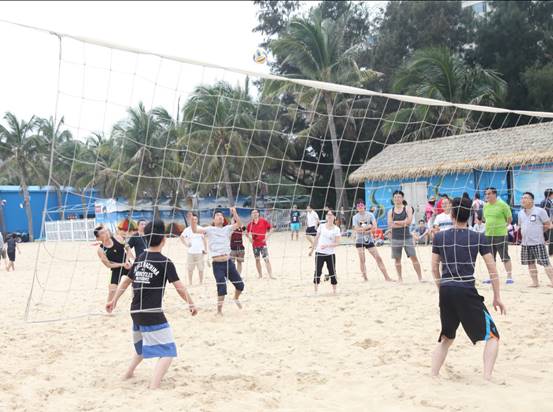 頭頂藍天,沐浴陽光,具有競技性的沙灘排球比賽開始了,大家光著腳板在金色柔軟的沙灘上,盡情的跳躍、翻滾、流汗,享受著這美妙的時光,充分釋放自己的好心情。