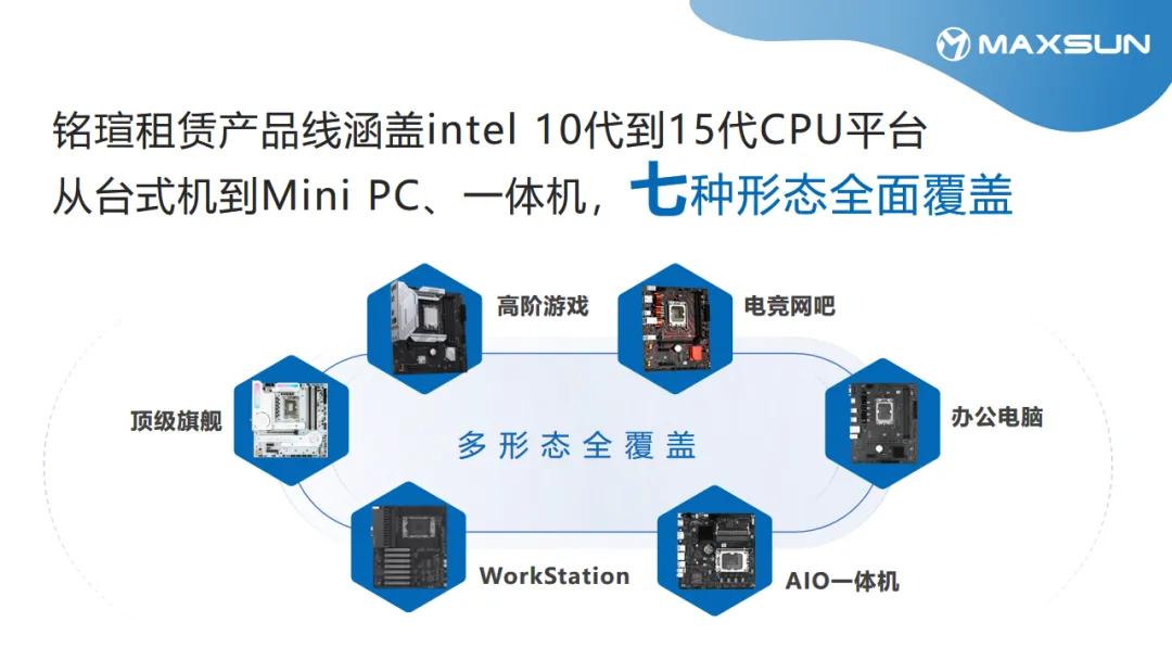 從產(chǎn)品上來說,銘瑄主板為英特爾APM提供了可靠有力的支持。銘瑄租賃產(chǎn)品線涵蓋intel 10代到15代CPU平臺(tái),使用場景從游戲、電競酒店/網(wǎng)咖、辦公、工作站、遠(yuǎn)程部署等,從臺(tái)式機(jī)到Mini PC、一體機(jī),七種形態(tài)全面覆蓋,為客戶提供了全天候全場景的無感穩(wěn)定租賃服務(wù),提供了靈活、高效和安全的數(shù)據(jù)管理和處理解決方案,讓企業(yè)可以專注于核心業(yè)務(wù),提升運(yùn)營效率,快速響應(yīng)市場變化和用戶需求。