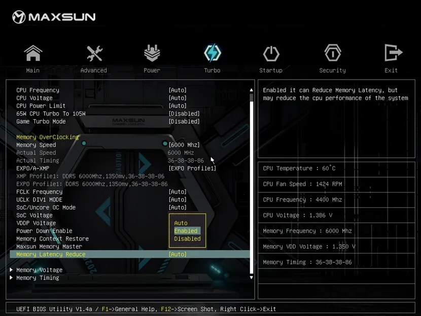 在Turbo頁面找到Memory Latency Reduce選項,選擇Enable/打開 后按F10保存,重啟后即可生效。