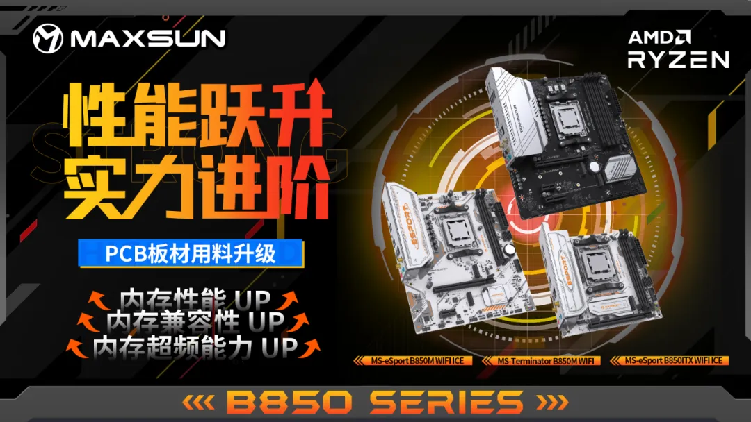 在科技的前沿陣地上,銘瑄始終以創(chuàng)新為驅(qū)動,不斷推陳出新,致力于為廣大用戶帶來卓越的產(chǎn)品體驗。2025開年之初,銘瑄在 AMD 平臺上再次發(fā)力,為用戶帶來全新 B850 系列主板,這將是一場性能與實力的全面進階之旅!