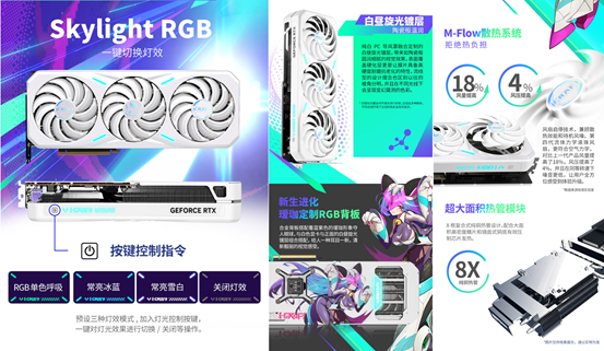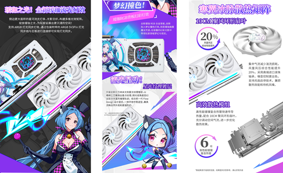 外觀上設(shè)計(jì)清新亮眼,純白PC導(dǎo)風(fēng)罩融合定制白晝旋光鍍層,觸感如陶瓷般圓潤(rùn)細(xì)膩,定制璦珈合金背板上的藍(lán)紫色璦珈形象格外吸睛,與正面鍍層相得益彰,帶來(lái)耳目一新的視覺(jué)感受。M-Flow散熱系統(tǒng)配備第四代流體力學(xué)滾珠風(fēng)扇,搭配 8 根復(fù)合式純銅熱管、大面積高密度鰭片與鏡面式銅底,全方位壓制芯片發(fā)熱,讓 2K 高畫質(zhì)運(yùn)行始終穩(wěn)定在線。