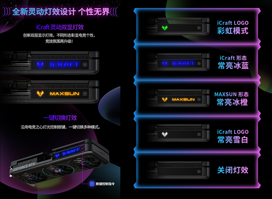 全新 iCraft 靈動雙顯燈效更是點睛之筆,多種燈光形態(tài)可自由切換,搭配一鍵模式切換功能,能打造專屬電競氛圍,讓你的主機在眾多裝備中脫穎而出,成為全場焦點。接口方面,DP*3+HDMI 的全接口組合,支持多顯示器連接,輕松滿足不同顯示設(shè)備的使用需求,無論是游戲?qū)?zhàn)還是日常辦公,都能無縫適配。